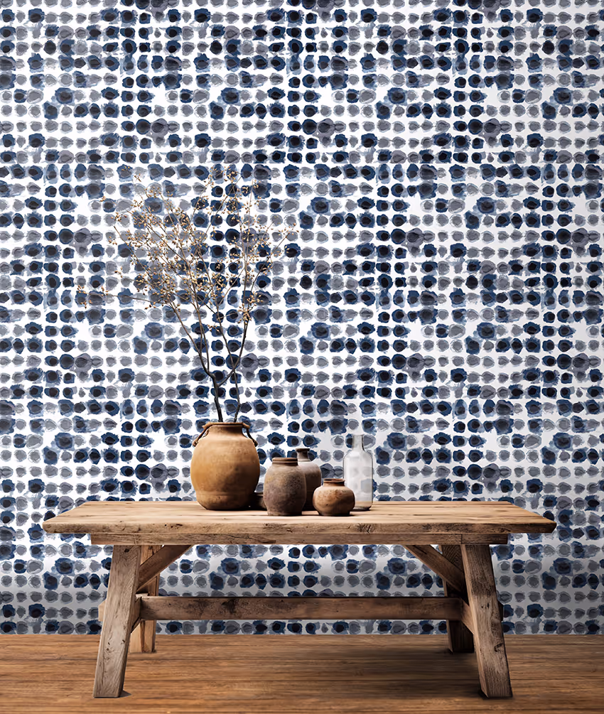 De son expérience de vie au Japon, Laur s’est imprégnée de la sensibilité Japonaise aux matériaux vivants, et s’inspire de la technique traditionnelle ancestrale de teinture ‘Shibori’ pour sa collection de papier peint.