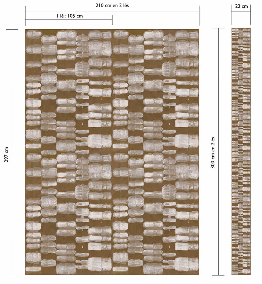 Dimensions : décor panoramique de 210 cm large x 290 cm haut (6m²) composé de lés de 105 cm de large - frise de 23 cm de large x 300 cm.